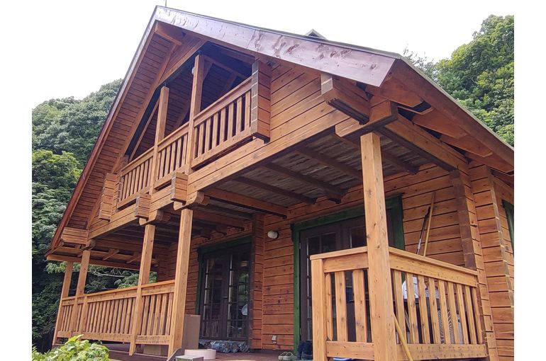 勝浦市にあるログハウスの台風被害修理