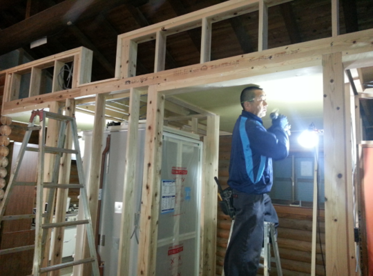 勝浦市にあるログハウスの台風被害修理