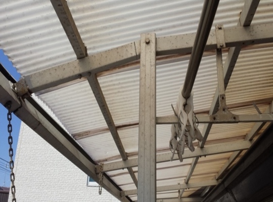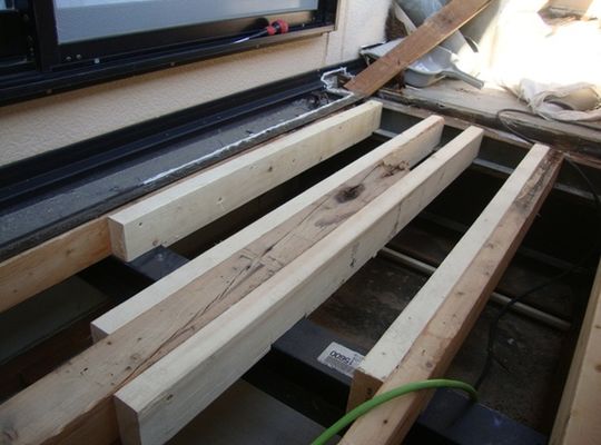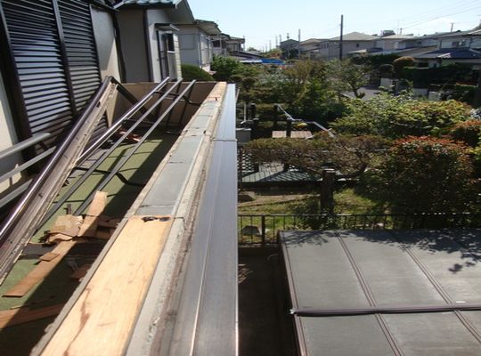 2015/03/06雨樋撤去 撤去後、今までの樋吊り金物の位置を代えます。 それは今までの樋吊り金物の位置(間隔)が荒かったため、もっと細かく金物を入れるた... -