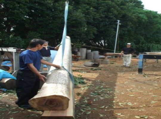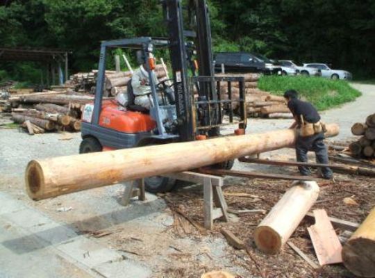 2007/08/28取りあえずではありますが、材木屋のほうに必要本数の半分、丸太が届きましたので、 この時点で木取りをしてしまいます。 まずは見てください。 杉です... -
